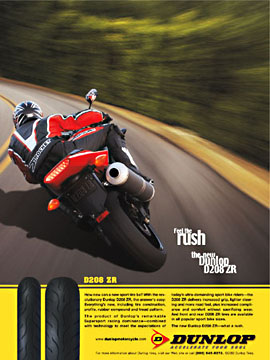 Product ad, digital composite photo. Bike and model shot stationary. Environment shot from camera mounted to moving vehicle. Everything shot with a digital camera.